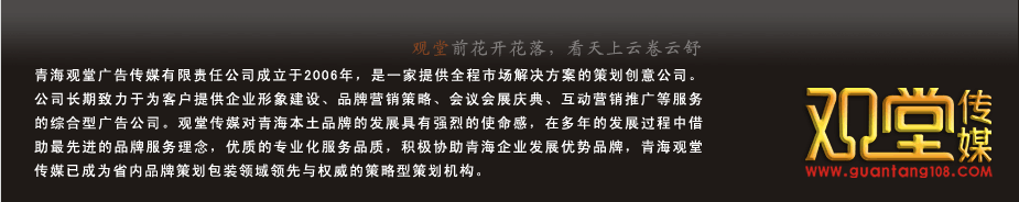 | 青海觀堂傳媒是一家專業(yè)從事西寧VI設計,西寧畫冊設計,西寧標志設計,西寧廣告設計,西寧包裝設計,西寧平面設計,西寧宣傳冊設計,西寧會議會展,西寧戶外廣告等類型的綜合廣告?zhèn)髅焦尽?div>地址:西寧市城西區(qū)黃河路14號威斯汀酒店8樓(城西區(qū)第三產(chǎn)業(yè)中心D008) 電話:0971-6111986 手機:13734686000 Copyright 2006-2012 青海觀堂廣告?zhèn)髅接邢挢熑喂?All Righths Reserved 備案信息:青ICP備13000327號-16 |